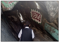 According to Islamic teachings, Muhammad is praying in the Hira Cave when the angel Gabriel calls him to be a prophet, or messenger of God